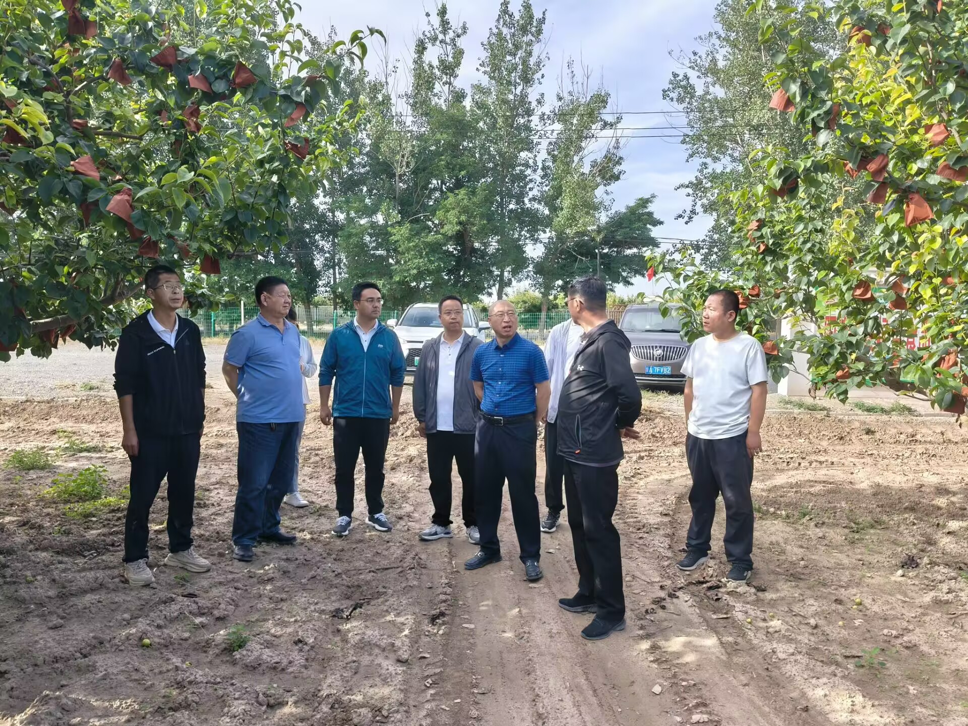 调研团队深入公司梨园、苹果园及省力化梨园,实地考察果园种植管理情况。在参观过程中,陕西华圣现代农业集团相关负责人与公司林果产业事业部负责人,就人员管理架构、果园种植模式、农业机械化应用进程等方面展开细致交流,并认可赞赏了公司规模化、标准化、统一化的林果产业管理模式。