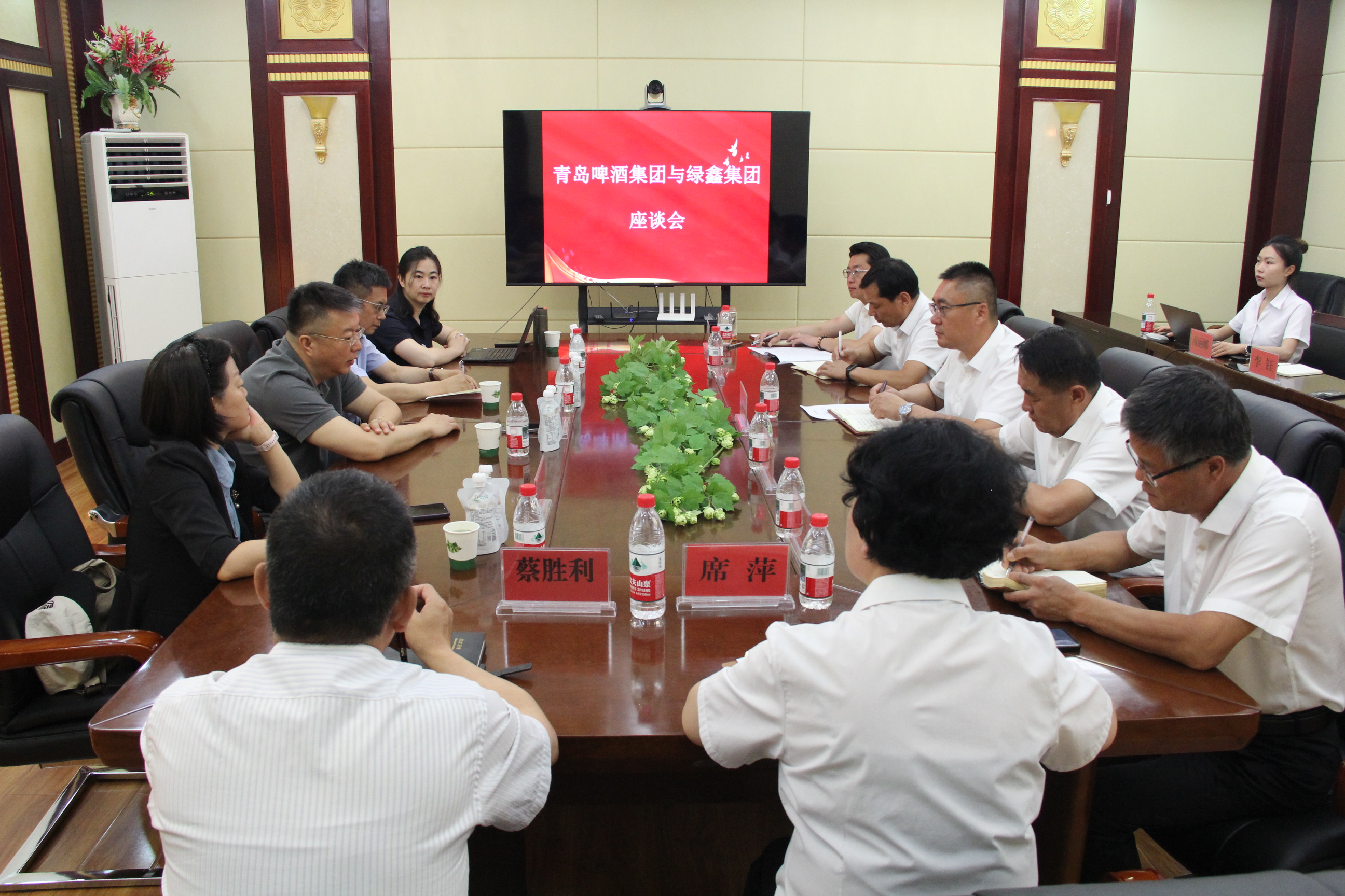 近日,青岛啤酒集团采购管理部总经理董钢、研发中心副主任余俊红一行到亚盛绿鑫集团考察交流,双方围绕啤酒花采收加工工艺优化、产业链延伸等5个方面展开深度研讨。