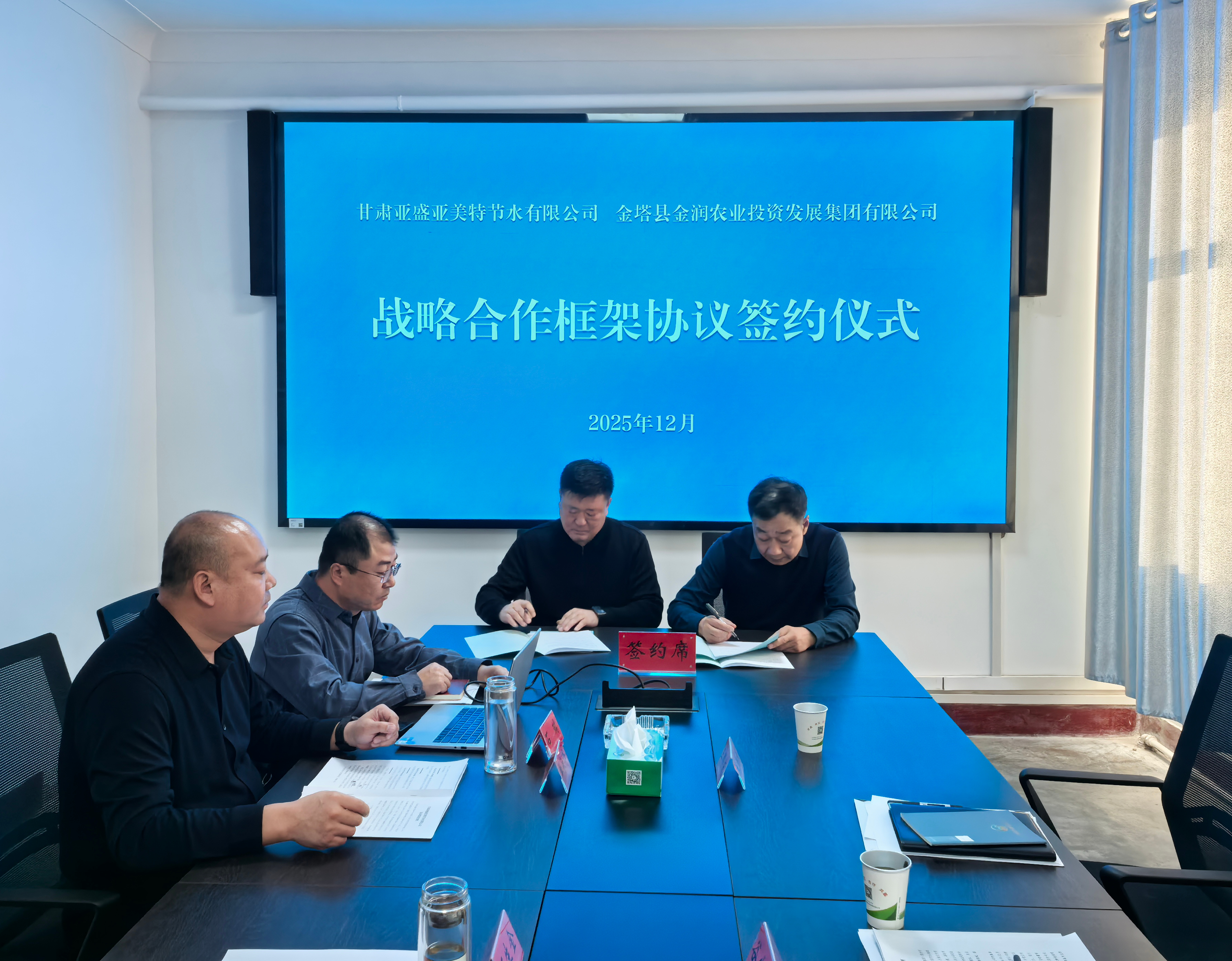 为让双方精准把握合作方向,公司领导就战略合作框架协议核心内容进行解读,明确了双方在资源整合、业务拓展、技术协同等方面的合作重点,为后续合作落地见效筑牢基础。最后,在双方与会人员的共同见证下,亚美特公司与金润集团公司代表完成战略合作框架协议签约。此次合作将秉持“党建引领、优势互补、共建共享、共促发展”的原则,充分发挥双方产业与资源优势,推动节水技术与相关产业深度融合,为践行绿色发展理念、服务地方经济社会高质量发展贡献国企力量。