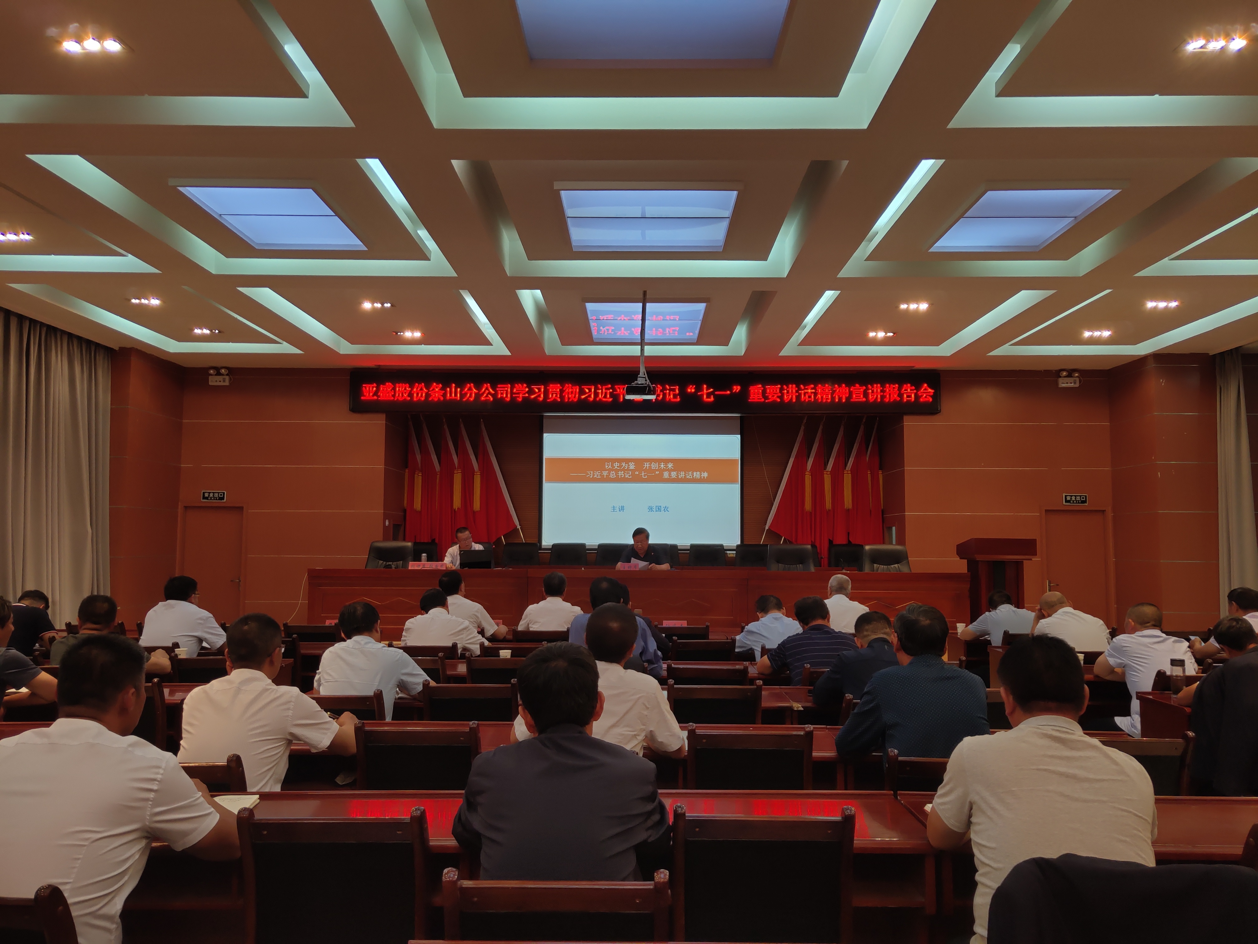 9月9日晚,亚盛条山分公司举办了学习贯彻习近平总书记“七一”重要讲话精神宣讲报告会,邀请景泰县委党校教研室主任、副教授张国农作了专题宣讲,公司领导班子、中层以上管理人员40余人参加。