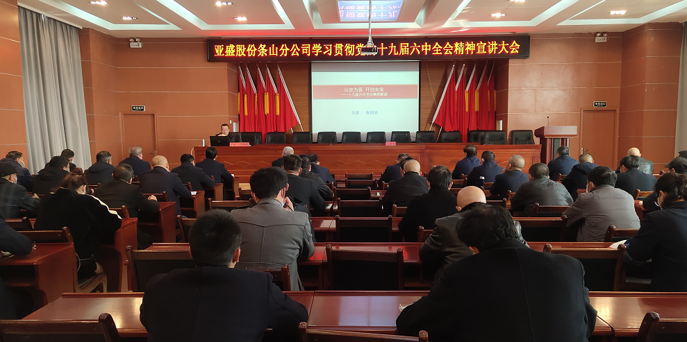 【条山分公司】12月3日,亚盛条山分公司举办了学习贯彻党的十九届六中全会精神宣讲大会,邀请景泰县委党校教研室主任、副教授张国农作专题宣讲。