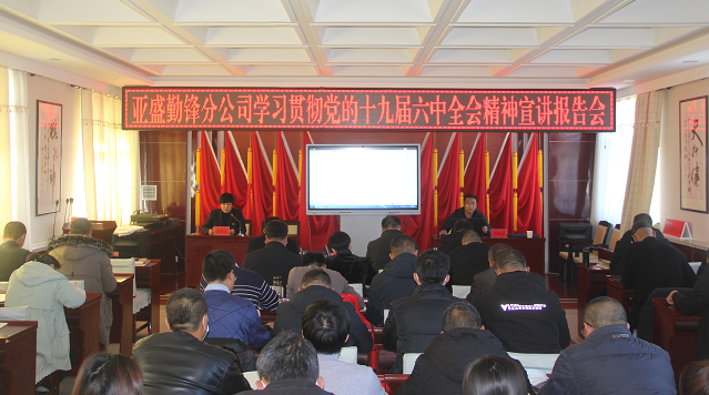 【勤锋分公司】12月20日下午,亚盛勤锋分公司邀请民勤县委党校辛俊会讲师进行党的十九届六中全会精神专题宣讲。分公司全体党员、机关工作人员、新入职员工共58人参加会议。