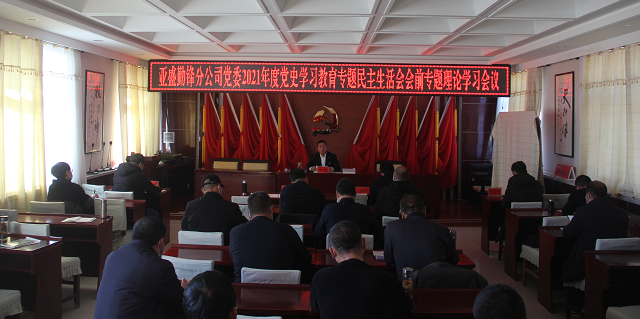 1月12日下午,亚盛勤锋分公司党委召开2021年度党史学习教育专题民主生活会会前专题理论学习会议,为高质量开好民主生活会打好思想理论基础。分公司领导班子成员、各部门负责人、基层单位管理人员共24人参加会议。分公司党委书记、经理王赟主持会议。