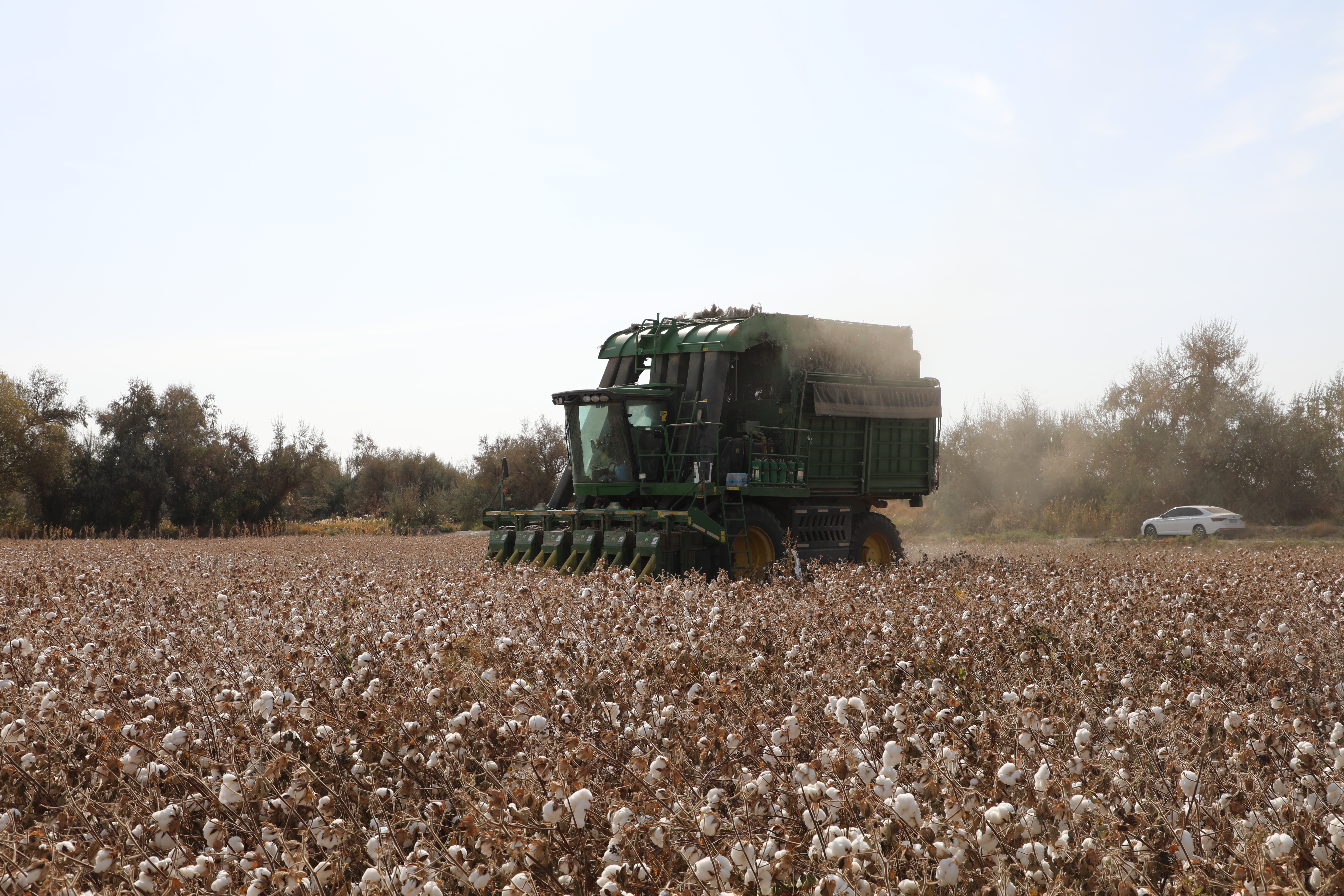近日,亚盛金塔分公司项目化经营团队种植的棉花进入集中采收期。棉田里,大型采棉机高效作业,依次完成采摘、集箱、打包等流程作业。