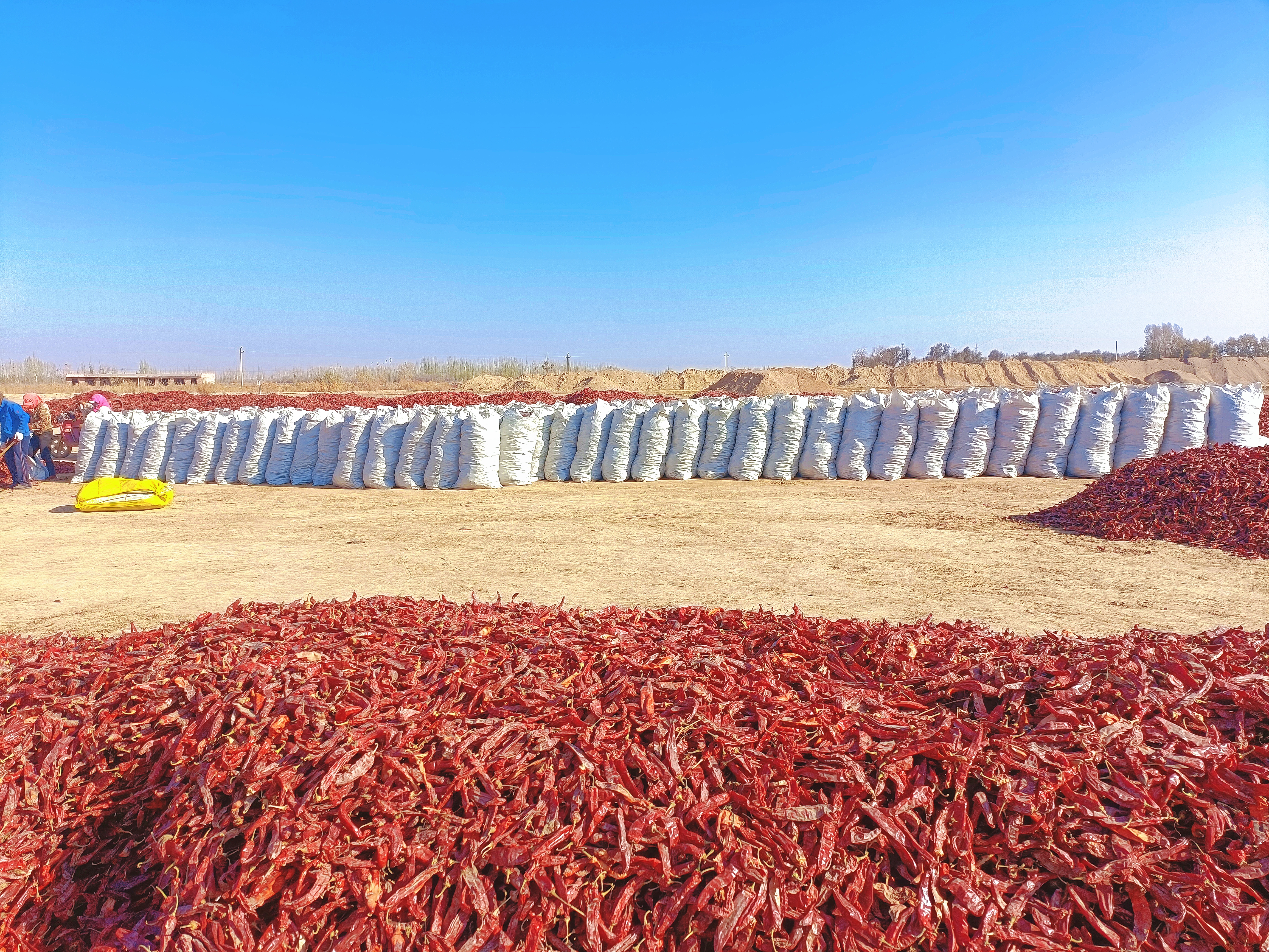 装包作业严格执行标准化操作链条。进行原料筛选,通过人工分拣剔除不符合品质标准的辣椒;按照订单规格全部用白色编织袋装包,确保每包产品规格统一;进行规范封装,切实保障运输安全。现场管理人员全程监督作业流程,团队成员各司其职,既保证了装包质量,又提升了工作效率,各环节紧密衔接、无缝配合。