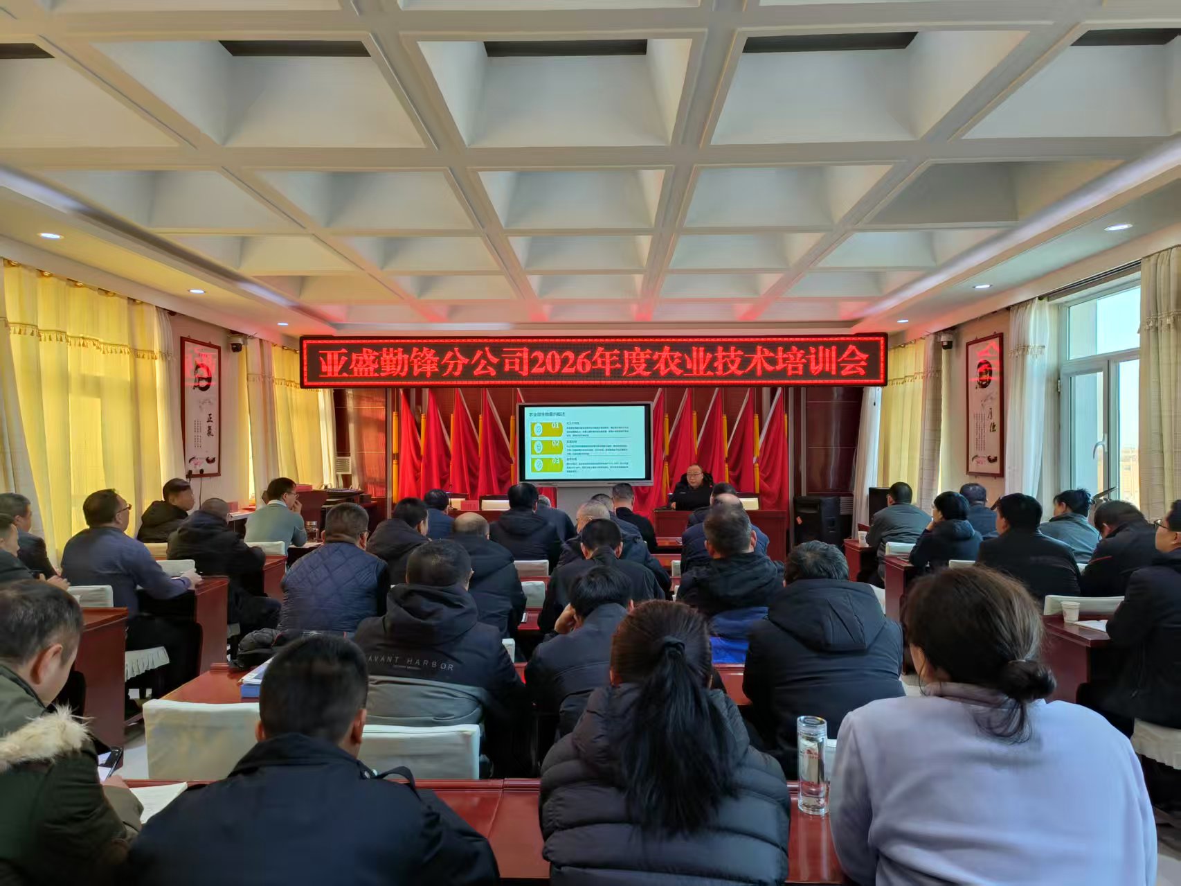 1月21日,亚盛勤锋分公司召开2026年农业技术培训会,农业分管领导、相关部室技术骨干等共计50余名职工参加。