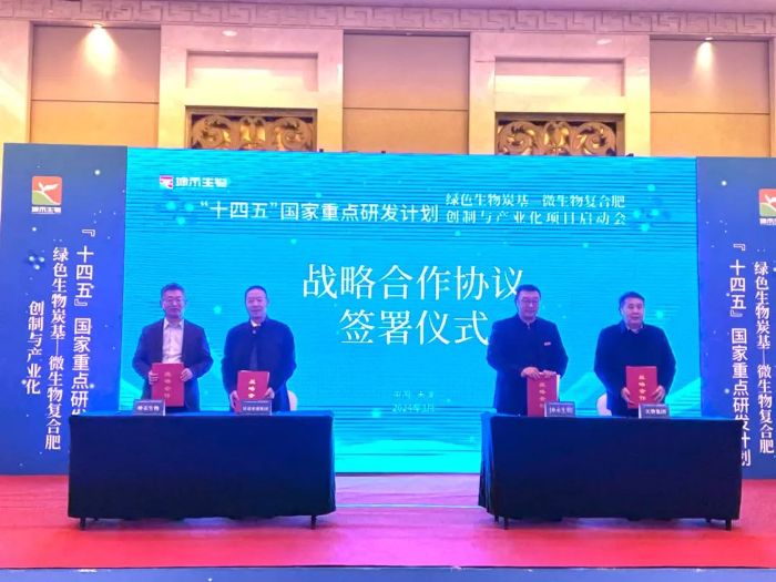 近日,“十四五”国家重点研发计划“绿色生物炭基—微生物复合肥创制与产业化”项目启动会在天津成功举办。会上,亚盛股份公司与天津坤禾生物科技集团股份有限公司签署《战略合作协议》,计划通过发挥各自优势,共同在农用高品质菌肥和腐熟蛋白生物有机肥研发、生产和推广等方面取得合作成果。