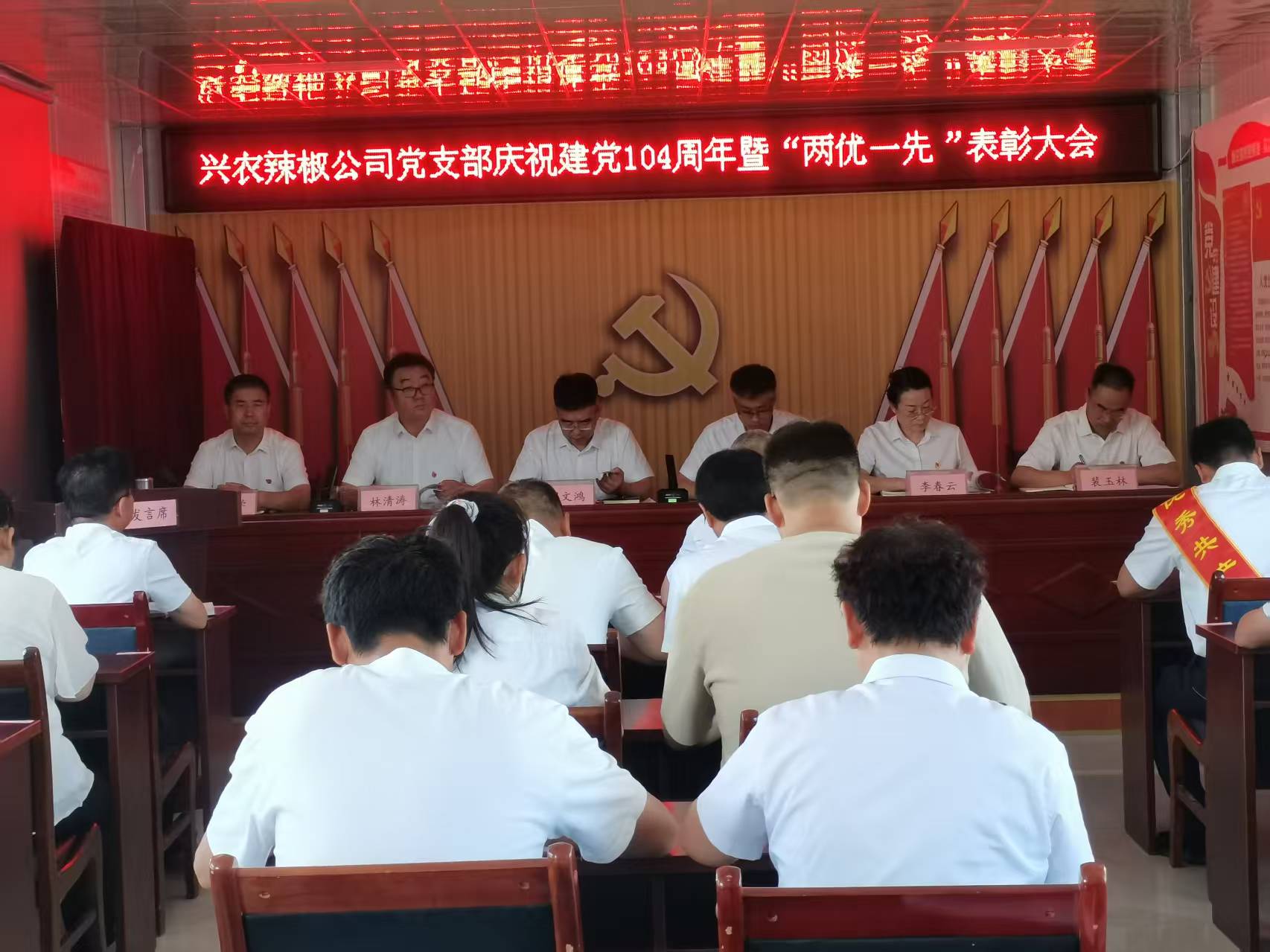 6月24日,亚盛兴农辣椒公司召开庆祝建党104周年暨“两优一先”表彰大会。公司全体党员、入党积极分子共30余人参加。