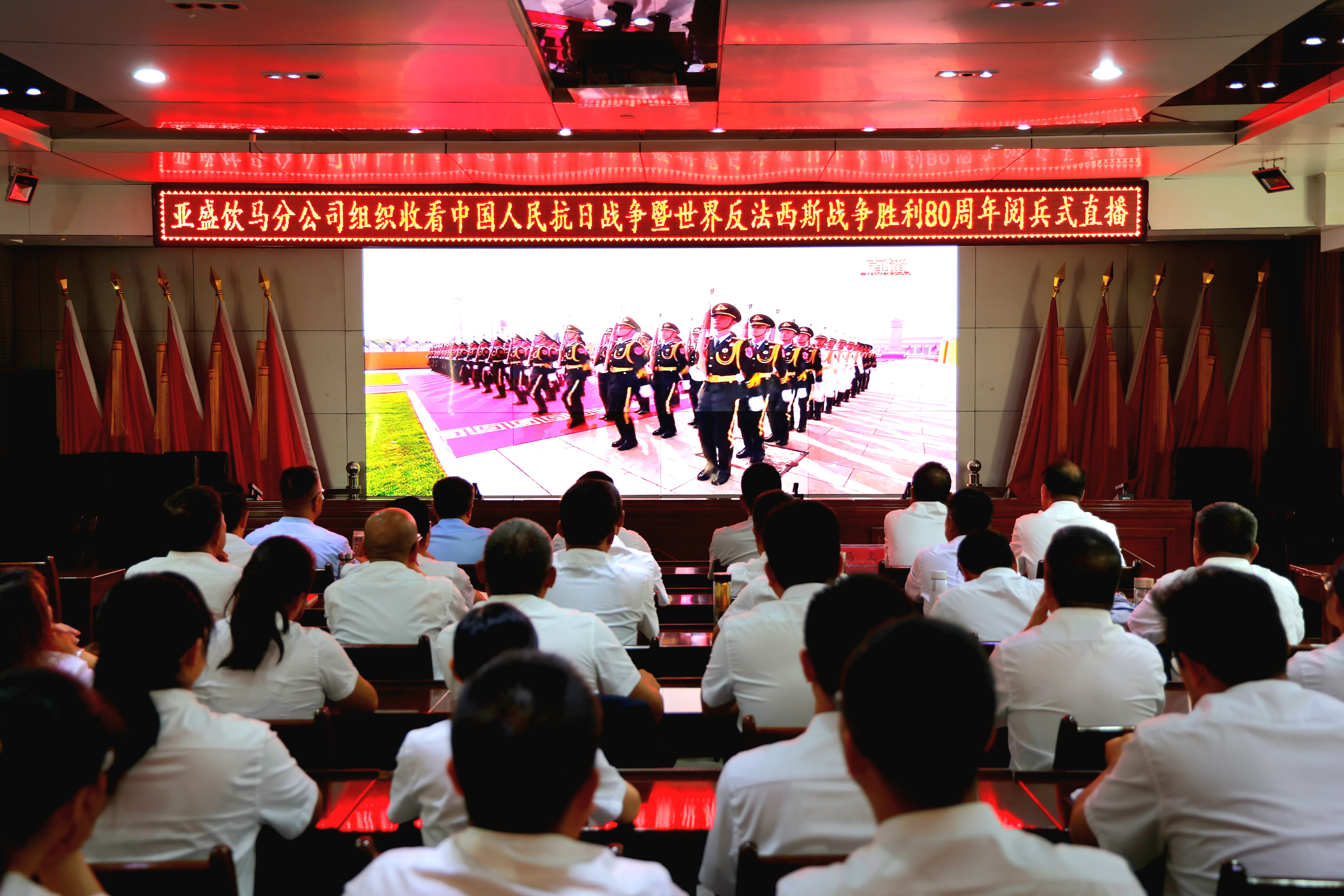 9月3日上午9时,纪念中国人民抗日战争暨世界反法西斯战争胜利80周年大会在北京天安门广场隆重举行,中共中央总书记、国家主席、中央军委主席习近平发表重要讲话并检阅部队。亚盛股份公司所属各企业组织员工观看纪念大会直播,共同重温抗战历史,汲取奋进力量。