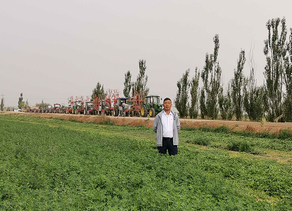 老张破解的第一个难题是提高苜蓿的保苗密度。他积极推行秋季建植、来春补种的苜蓿建植技术。当时一线管理人员都认为土壤改良不彻底,总有“花羊皮”“鬼剃头”等严重影响种植效果,特别是两次播种会带来机械费用和种子费用增加,谁也不愿意在年终考核时因成本超标而扣分,降低个人收入。为此,老张组织管理人员,将两次播种提高保苗率的道理通过算账的方式进行了讲解,以提高保苗密度来弥补“花羊皮”、春播方式遏制“鬼剃头”的建植模式,增加单产,提高品质。事实证明,经两次播种建植的苜蓿地,苜蓿草质量明显提升,也有利于延长苜蓿留床年限,减少轮作期,加上优级苜蓿价格的持续走高和市场走俏,总体效益显著。