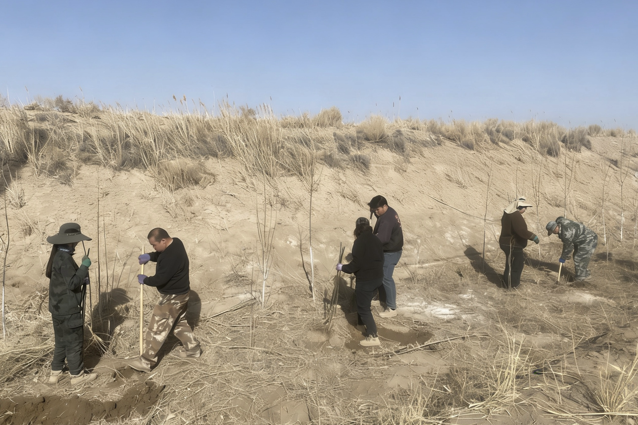 植树现场,大家分工协作、干劲十足,挥锹挖坑、扶植苗木、培土压实,合力栽下一株株树苗。此次活动共新建、补植防护林带4.7公里,栽植各类树苗10200株,为企业生态增添了浓浓绿意与勃勃生机。